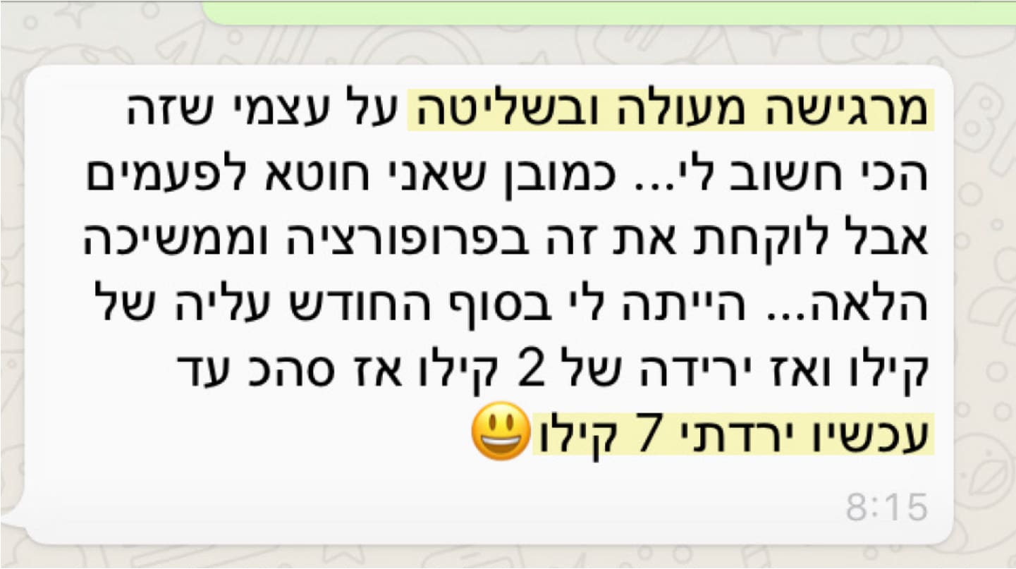 הן כבר ירדו במשקל בקצב של 0.5-1 קילו בשבוע, ושומרות על התוצאות