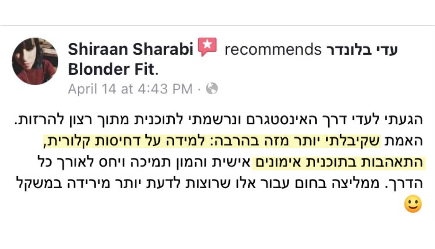 "למדתי שאפשר לשלב הכל במידתיות, ועדיין לרדת במשקל"