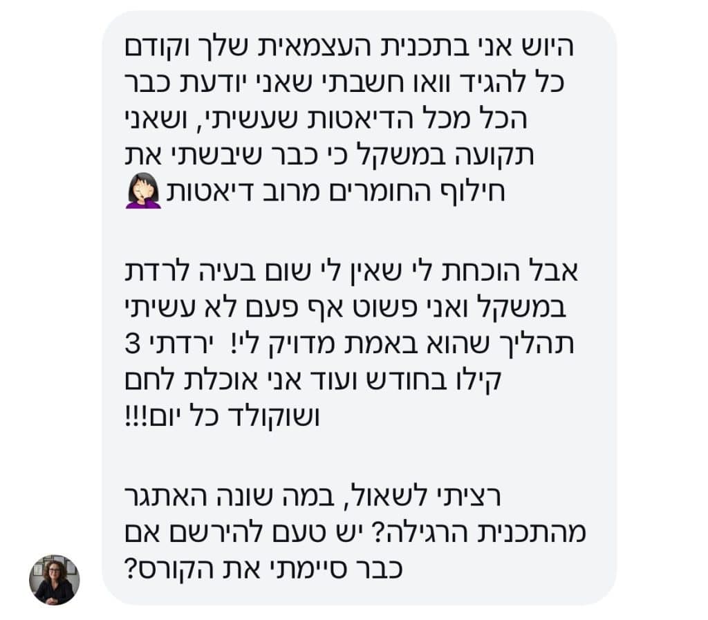 אני עוזרת לאנשים לרדת במשקל בעקביות ולחטב את הגוף.