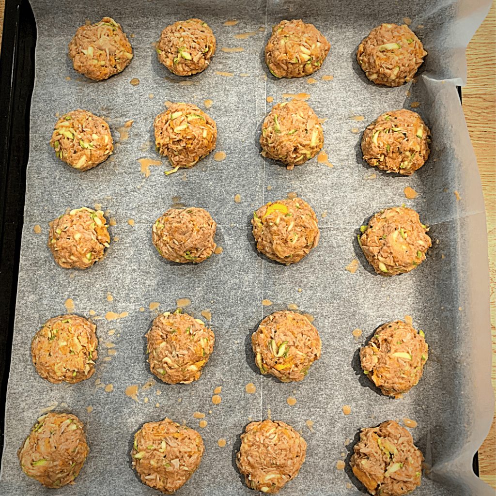 - לגלגל בערך 20 כדורים מהבלילה ולהניח אותם בנפרד על במגש