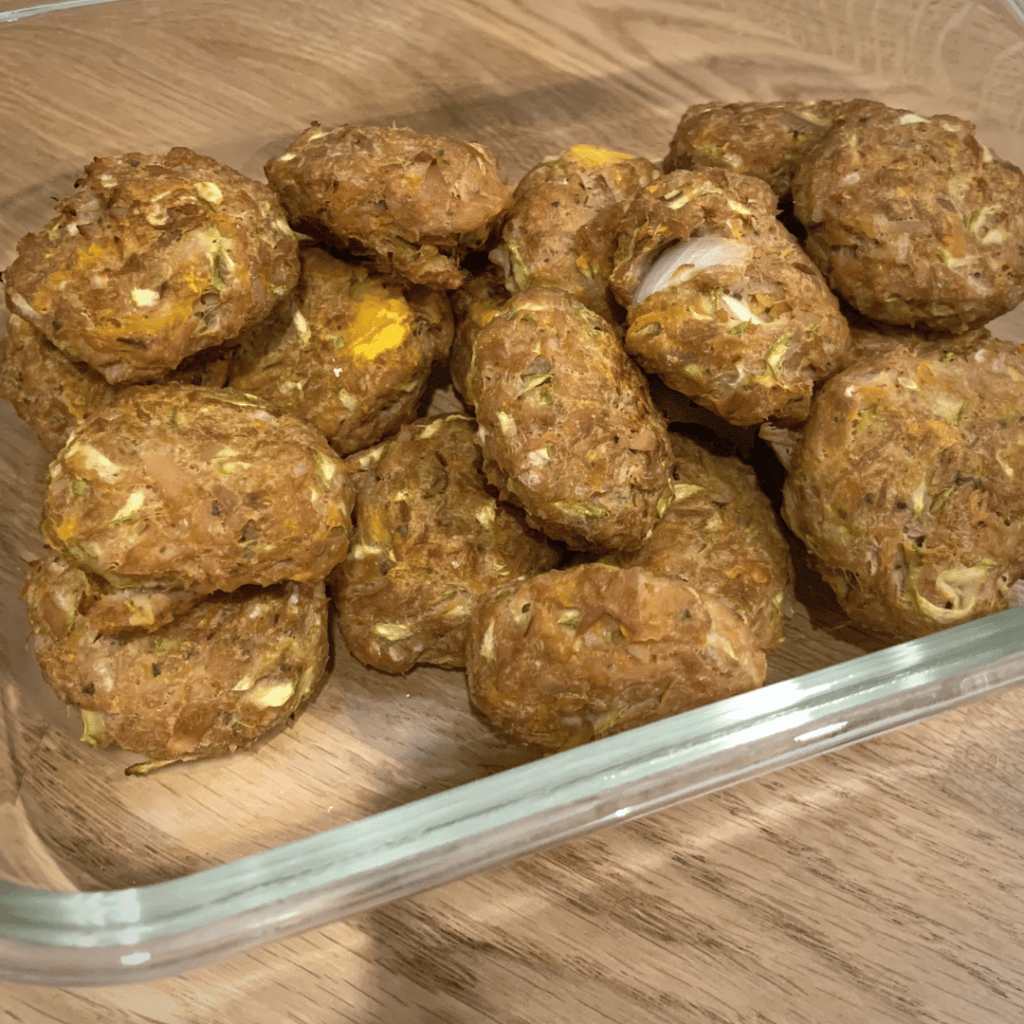 הערכים מתייחסים למנה של רבע מהכמות (לפי החלוקה שלי, יוצא 5 קציצות, אך כמובן אפשר גם לחלק לקציצות גדולות יותר ופשוט לחשב רבע ממה שיוצא לך כמנה אחת)