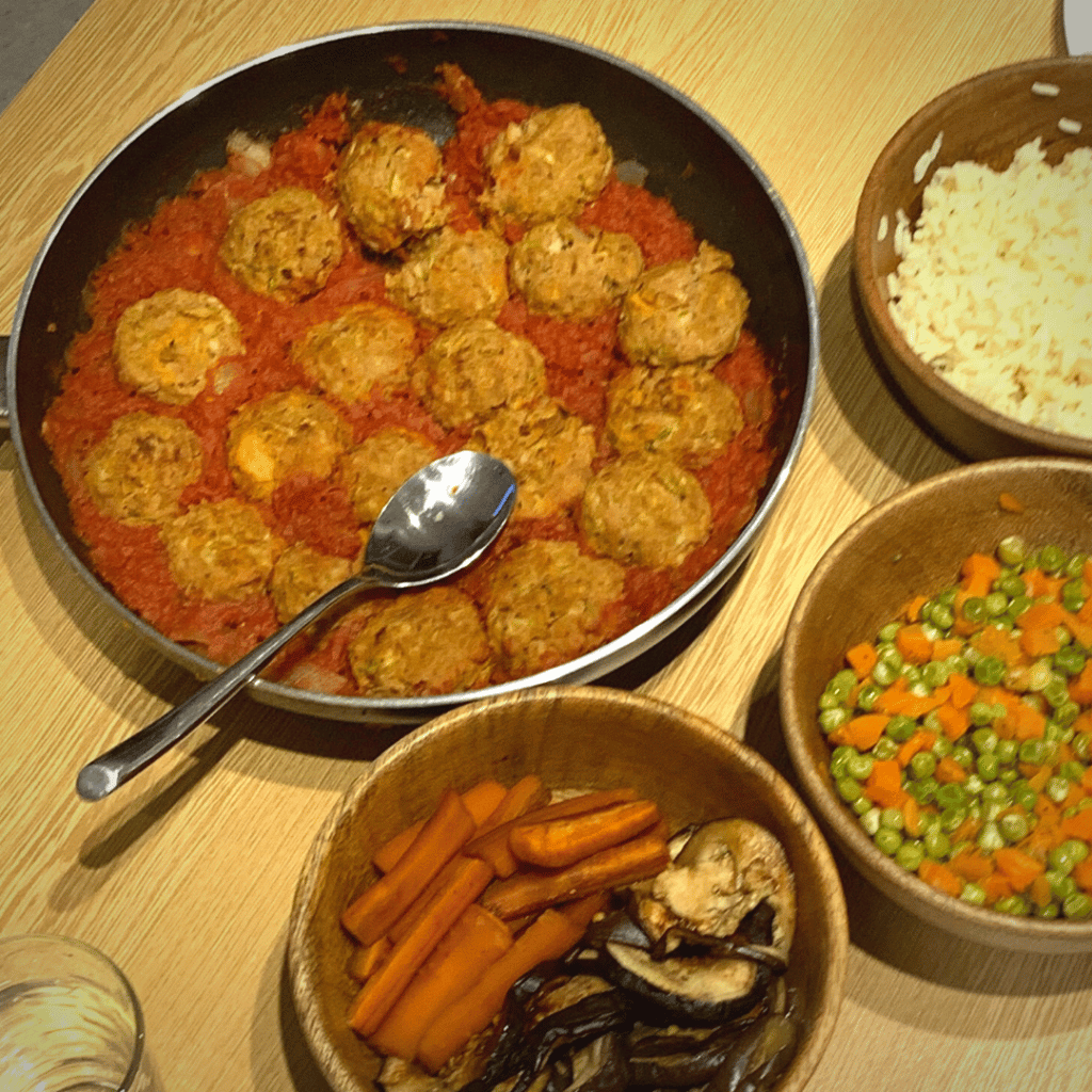 כעת ניתן להגיש כך, או להכניס לתוך רוטב עגבניות. מתכון הרוטב (ניתן להחשיב את הרוטב כרבע מנת פחמימה)